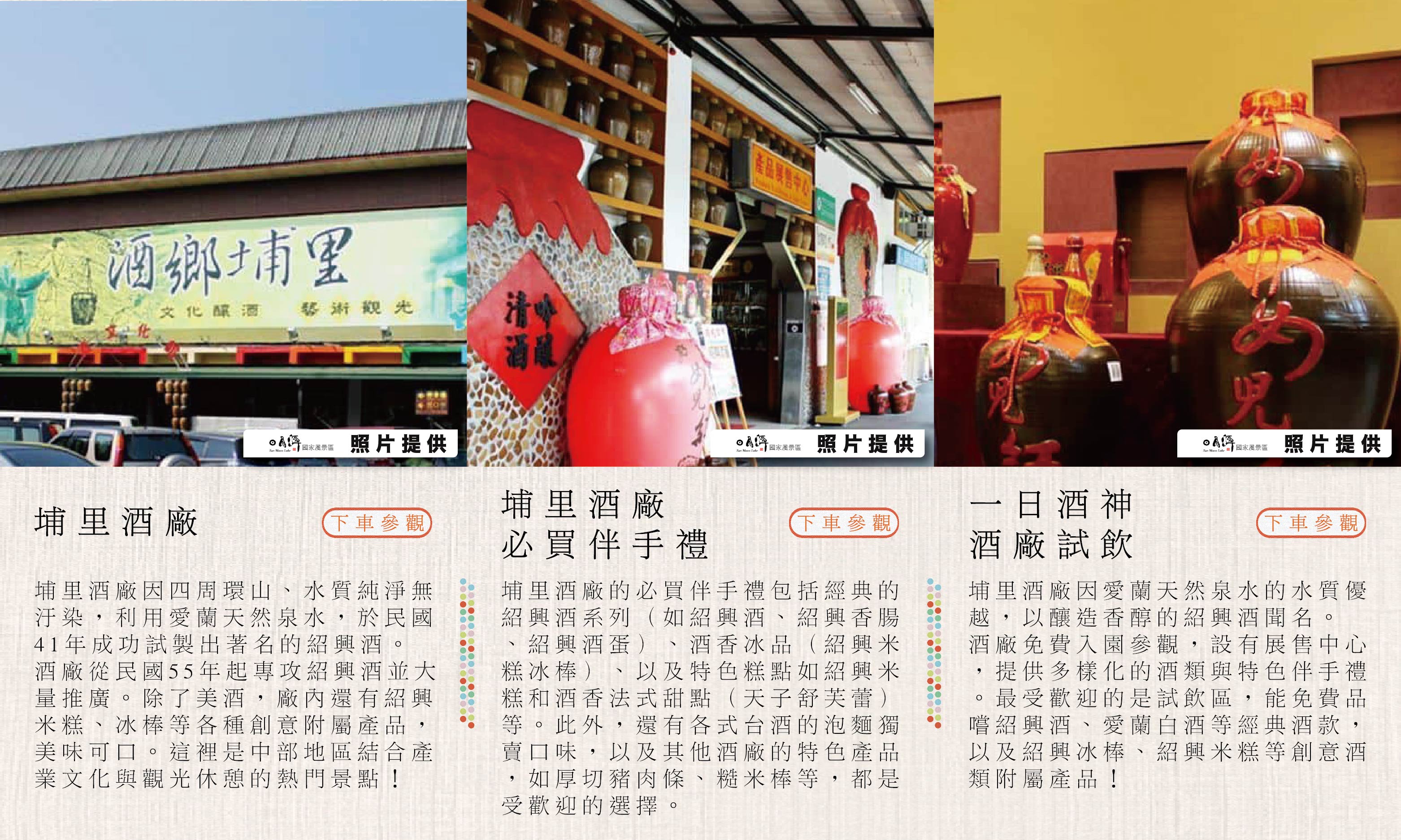 啟程 ⟡ 台中高鐵車站 ⇀ 芬芳微醺 ♡ 埔里酒廠〖紹興文化・試飲・伴手禮採購〗⇀ 邵族風味 ♡ 伊達邵碼頭〖伊達邵風味料理〗⇀ 湖光山色 ♡ 日月潭遊湖〖玄光寺・拉魯島・水路體驗〗⇀ 建築美學 ♡ 向山遊客中心〖九蛙疊像・無邊際水池散步〗⇀ 壯闊視野 ♡ 文武廟〖祈福參拜・高空觀景台拍照〗⇀ 復歸 ⟡ 台中高鐵車站|或日月潭周遭飯店